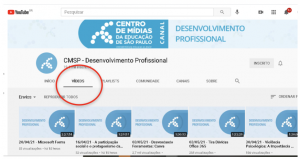 Para o acesso ao repositório pelo Canal do Youtube do CMSP, acesso o link https://www.youtube.com/channel/UC4PxhhCLUs1ESKz5EwuepMw e busque o Canal Desenvolvimento Profissional