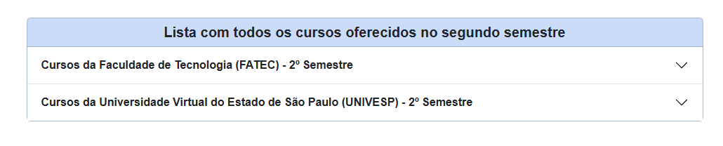 Além dos quatro cursos disponíveis na Univesp, confira abaixo a lista dos 89 cursos oferecidos nas Fatecs para o segundo semestre deste ano: