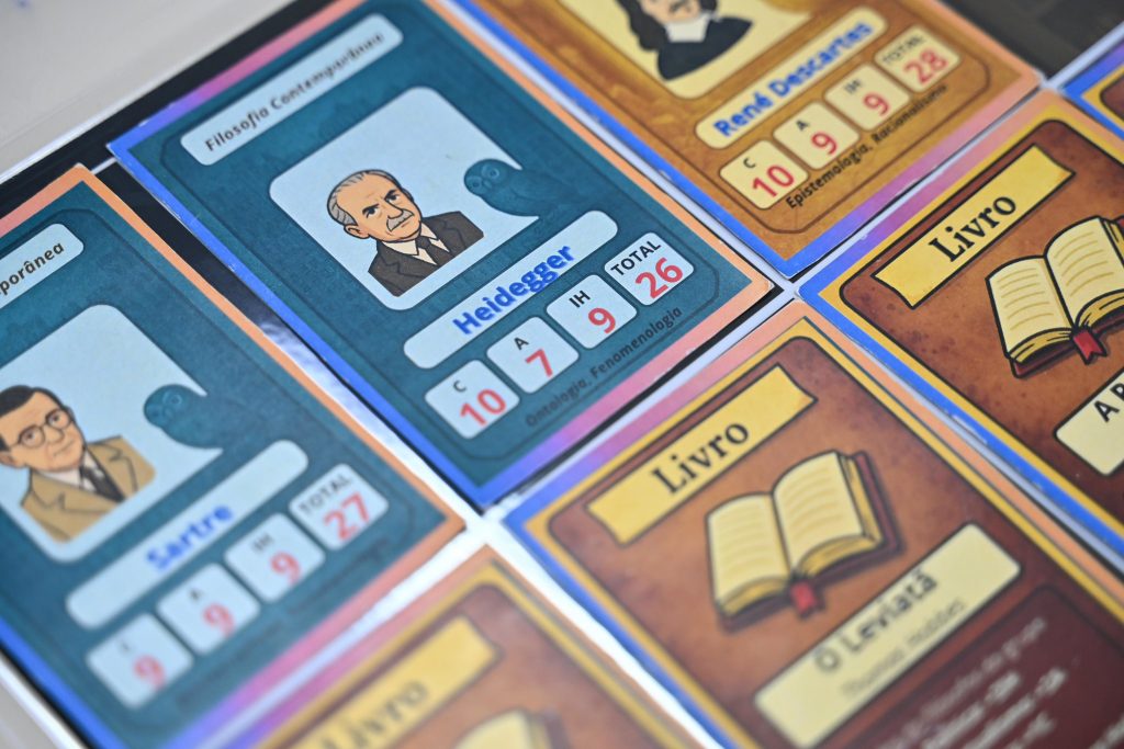 O resultado foi esse RPG filosófico com 100 cartas e três ciclos de tabuleiro, finalizado no início deste ano. Cada carta representa filósofos, conceitos e áreas da filosofia, e as “batalhas” são travadas com argumentos e conhecimento, não com força ou sorte, como acontece nos jogos que inspiraram o professor. “No lugar de batalhas, o jogo é feito de argumentações e conhecimentos. A ideia é ajudar os alunos a gostarem da filosofia, memorizarem e conhecerem os filósofos”.
