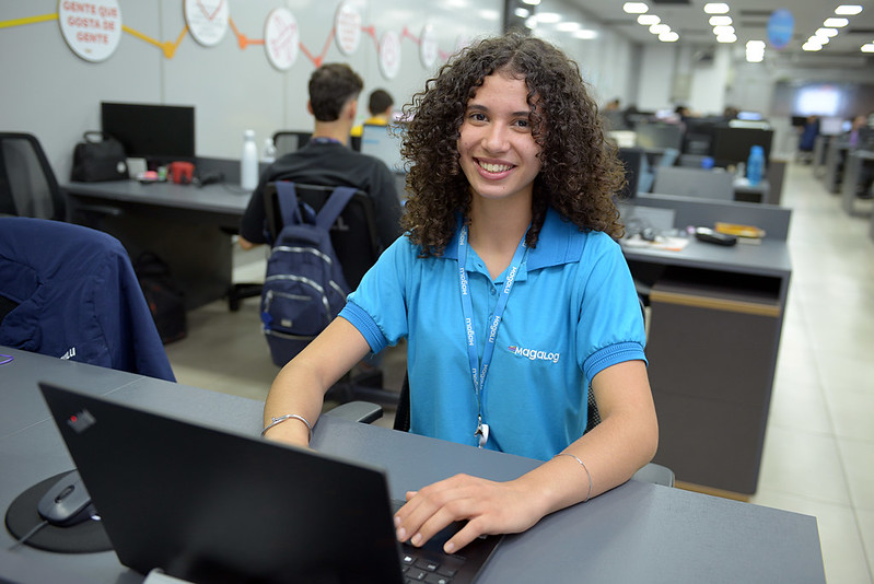 Tamires na Magalog, onde faz estágio. Foto: JotaK/EducaçãoSP